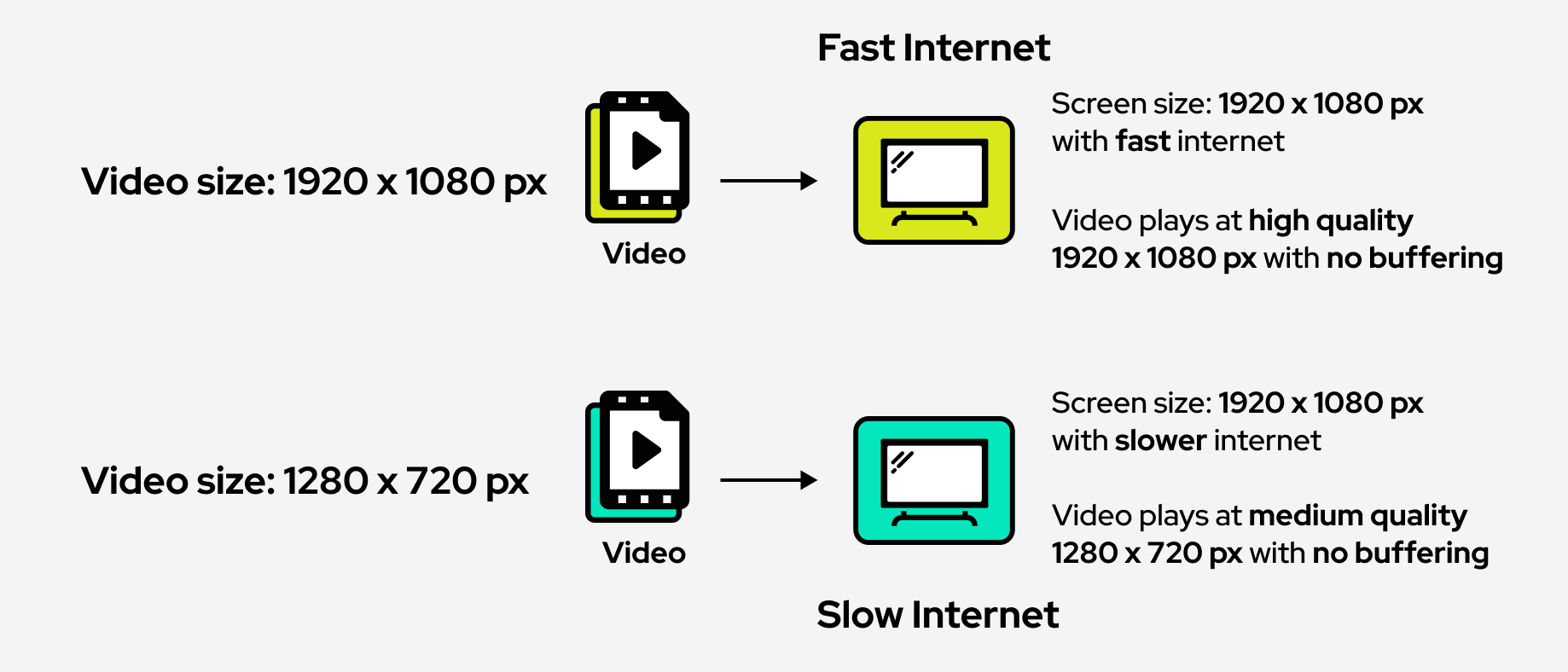 3. Usando um player cliente que monitora a largura de banda e a velocidade da Internet para alternar entre versões de qualidade ideal.
